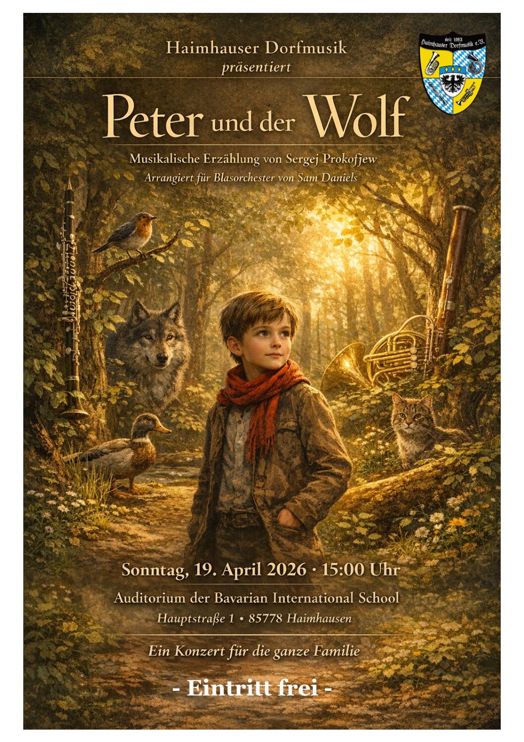 April 19 @ 15:00 – 17:00 Peter und der Wolf – Familiennachmittag Bavarian International School Haimhausen Hauptstraße 1, Haimhausen, Bayern, Deutschland